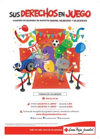 En esta edición, además de la entrega de juguetes en los puntos de recogida habilitados, se podrá colaborar con la campaña realizando donaciones en la web de Cruz Roja, a través del teléfono 900 22 44 90 y mediante el envío de SMS con la palabra JUGUETES al 28092 (1,2€) y al 38092 (6€), que se destinarán íntegramente a la compra de juguetes para niños y niñas de familias en dificultad social.